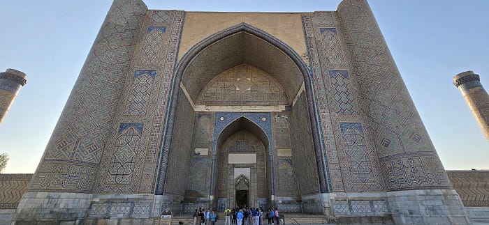 1402 Ankara Savaşı ile bildiğimiz, Timurlenk/Aksak Timur dediğimiz, Han değil Emir olan Timur, Özbekistan için çok büyük bir isim. Yorkin Bey ve Özge Bey Semerkant ve Timur’u anlatırken tuttuğum notlardan birkaçını yazacak olursak:
